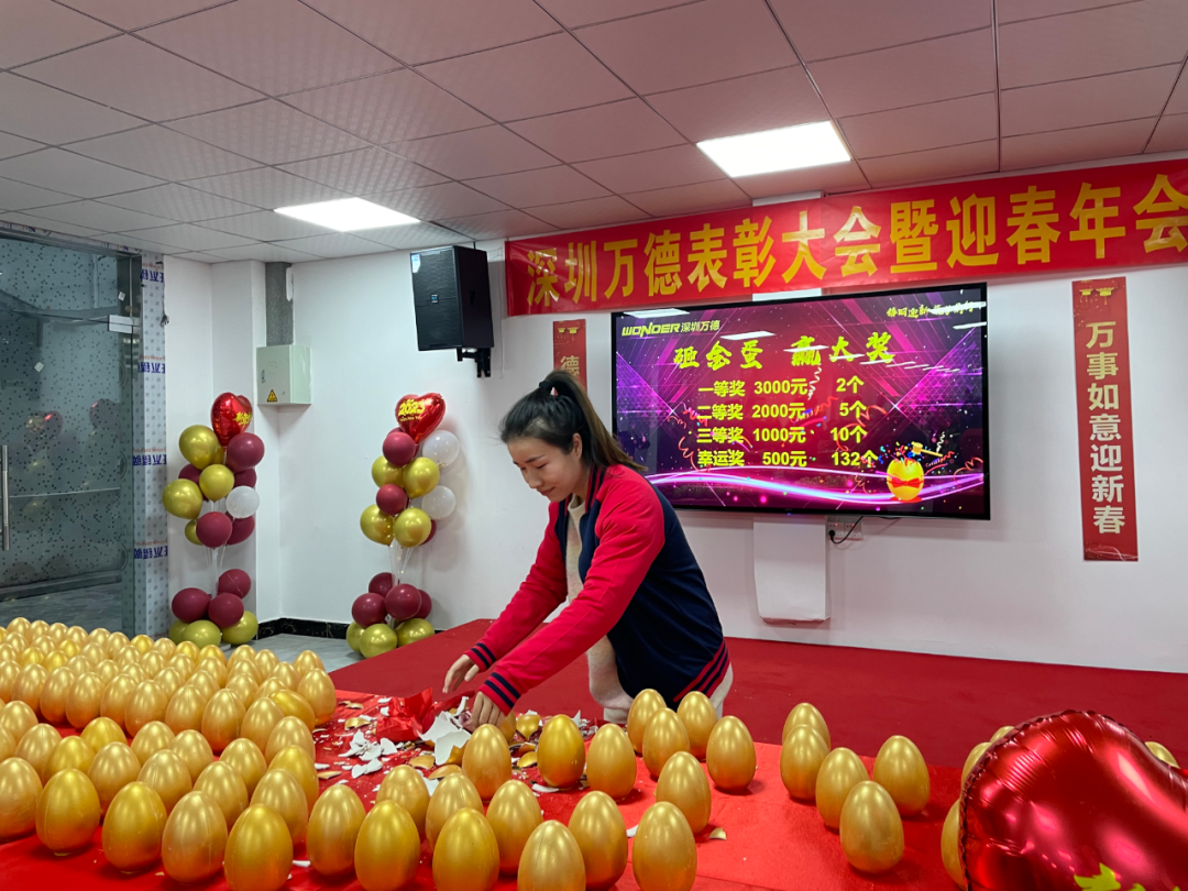 有別于以往的抽獎形式,公司今年特地準備了精彩的砸金蛋環節,直接現金大獎給到大家!現場氣氛熱烈,員工和家屬們喜笑顏開。